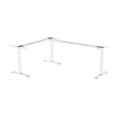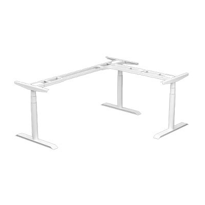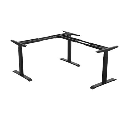 An electric height-adjustable frame designed to create an ergonomic L-shaped desk, perfect for maximizing corner spaces and boosting productivity.